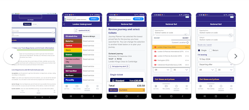 ومن هذه الوسائل تطبيق National Rail الذي يعمل على مساعدة كل من يسعى للتنقل بسهولة وفعالية عبر شبكة السكك الحديدية في بريطانيا العظمى.